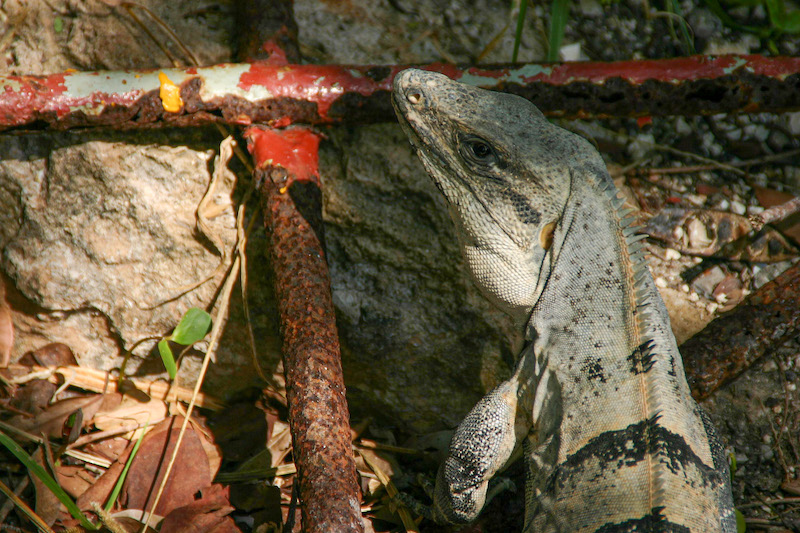 I am in an internet cafe plugged in to their modem with our laptop – on the edge of a dusty road here on the southern coast of Mexico in Puerto Angel. The sea and a stretch of beach is a 2 minute walk across this road but you can’t hear the waves because they are drowned out by hundreds of birds who congregate in the trees every evening; it’s deafening but amazing. I think they are some sort of starling but with a much longer tail. Lots of iguanas around Mexico too, pretty big but they run away quickly to hide in holes.