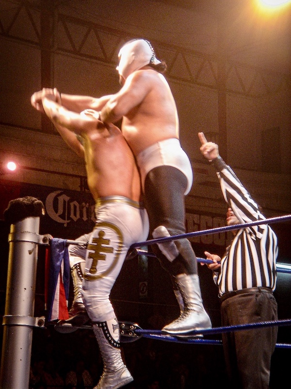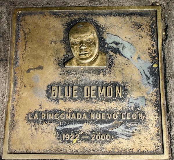 The pavement outside the coliseo has brass plaques commemorating past and current wrestlers, one of the most famous being Blue Demon. You can buy masks inside and on the street and at two specialist shops opposite…they range in price from 100 pesos ($10) to 600 pesos which are the professional masks. Dave bought one for Rayman who fought the night we were there and Dave wore it proudly for all of Rayman’s fight. I ate hot doughnuts and pretended not to be with him. You can get loads of different food inside and the doughnuts were great. Entrance fee only 120 pesos each (approx $12/£6) and for that we saw 5 fights – top night out.