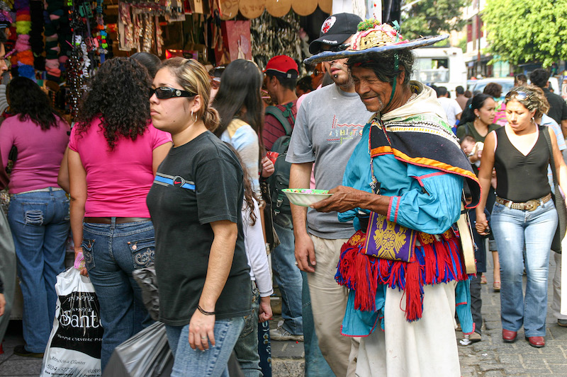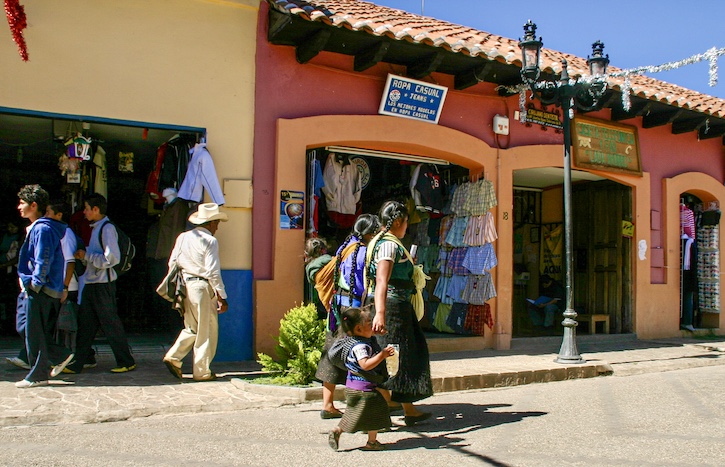 Misty mountain tops – driving to San Cristobal de las Casas (Chiapas State). From the winding mountain region of Palenque we drove through the remote Chiapas highlands, known to be Zapatista rebel country. The scenery is stunning, green mountains, lush tropical vegetation, empty roads. Heading for the city of San Cristobal de las Casas in the central highland state of Chiapas; one of the most indigenous areas of Mexico where it’s hard to take photos of people because they are opposed to it. We had new friends whom we met as we passed them walking roadside, unsure where they were heading next so we offered them a ride with us. Peter and Zuzy a young couple from Slovakia…they gladly joined us in our VW Jetta which is seeing some serious mileage now and covered in dust. No wonder so many people drive high clearance vehicles like 4 x 4 pick ups; the speed bumps are so high we have barely made it over some of them.