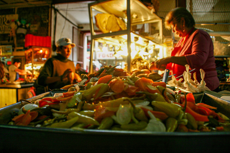 The market in Guadalajara is huge, 3 floors. The Mercado San Juan de Dios was built in 1958, it’s an ugly brick building from the outside accessed by a bridge from the main street, but an amazing experience inside and sells everything from cheap plastic toys, watches, sunglasses, tortillas and kebab… to birds and rabbits in cages. It has a massive eating section where you can move from stall to stall snacking on sopes, tacos, deep fried peppers stuffed with cheese and hundreds of other Mexican fast snacks. This market is not for the claustrophobic; it really is packed and there is very little space between the stalls which run like narrow alleyways the length of the entire 4,000 square metres that the market occupies. We have been eating some street food and so far have avoided the dreaded Deli belly…unlike Danny who just eats everything.