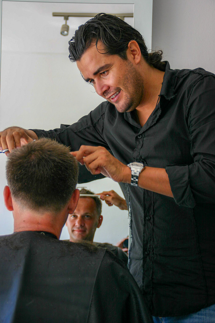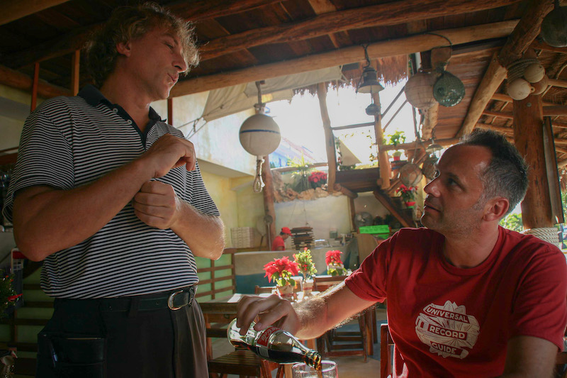 Playa del Carmen (Yucatan State) a day trip with Roberto to a large supermarket to stock up on supplies for Shambala. Roberto driving 100mph on the motorway with Enzo riding in the back of the truck ears flapping in the wind…unnerved, I ask Roberto to slow down. When we park Enzo barks at every Mexican person who walks near the truck…but not at the tourists. I’m embarrassed by an adopted dog from Italy who appears to be xenophobic. At a bar we have Volcano Margaritas, tequila, crushed ice, topped with chili…spicy but delicious. we have haircuts at a place Roberto uses.