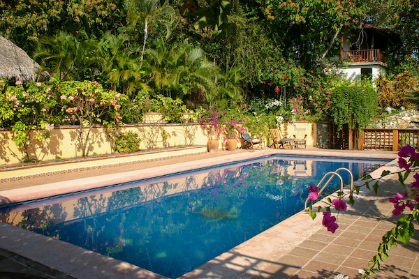 Dave has spent most of today in the pool or the hammock here at La Buena Vista…built in to a hillside overlooking the sea. We need to relax after spending several days driving hundreds of kilometres from Tulum in the Yucatan, through Chipas State, Palenque and San Cristobal, potholes, winding roads up and down and through mountains, army road blocks…we had the whole car and bags opened and searched on one stop…thousands of topes (speed bumps) even on motorways. Dave’s handling it all very well. Thank God I am not driving.