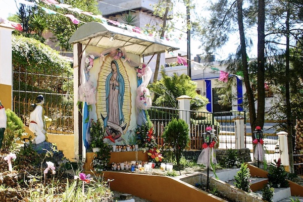 The roads are currently being taken over by teenagers, it’s the 12th December today which is a religious festival for Guadalupe and people ask for favours from the virgin saint. To do this they must promise to do something difficult – like running from where they live in Mexico City to Cancun, which in plane takes 2 hours. The trip takes a week or so and we have seen hundreds of people doing this – usually it’s a relay team of kids taking it in turns to carry a torch while running or cycling while being followed by a truck carrying the kids who have had their go and are waiting for the next leg. The trucks are very colourful and the kids are all wearing the same T Shirts designed for the event. It all looks great from the outside and most of them seem to be enjoying it but personally I think they are all a bit mad.