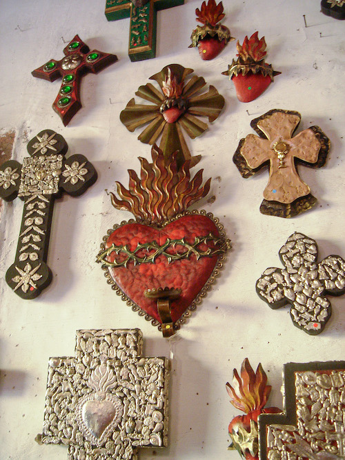 San Miguel de Allende (Guanajuato State). After 3 nights in Guanajuato we drove on to San Miguel de Allende; another pretty Mexican city with quite a large ex-pat population. Upscale shops and restaurants, traditional crafts of hammered tin and carved wooden milagros and like other Mexican cities in mountainous areas, streets built on a grid system which snake steeply up and down and a main square built around a cathedral which looked particularly stunning lit up at night. We stayed one night before heading back the next day towards Guadalajara via Tlaquepaque.