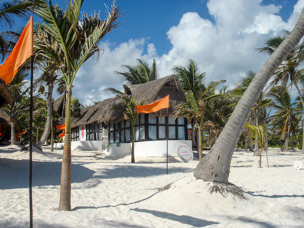 Not that we want to make all our mates and family totally JEALOUS or anything but we are now dossing on the most perfect white beach you have ever seen – which is practically deserted, stunningly beautiful, and our current accommodation is a wood and glass box on stilts standing right on this stretch of paradise! We are staying at Shambala Petit Hotel which is in Tulum, 20 minutes drive from Tulum town down on the beach.