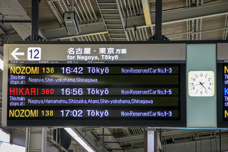 We are having an incredible time in Japan but we fly tomorrow to Hong Kong, wish we had more time to explore this fascinating country…we need to return. A couple of days ago we took the bullet train from Tokyo to Kyoto; 2hrs 40 minutes to go 476 kilometres. The speed and efficiency is stunning and they look fabulous. They slide in to the platforms like shimmering white ghosts. The destination boards show information in Japanese and English. The boards below show the return leg from Kyoto back to Tokyo. Fast comfortable immaculate and always on time…what more can you ask of your public transport.