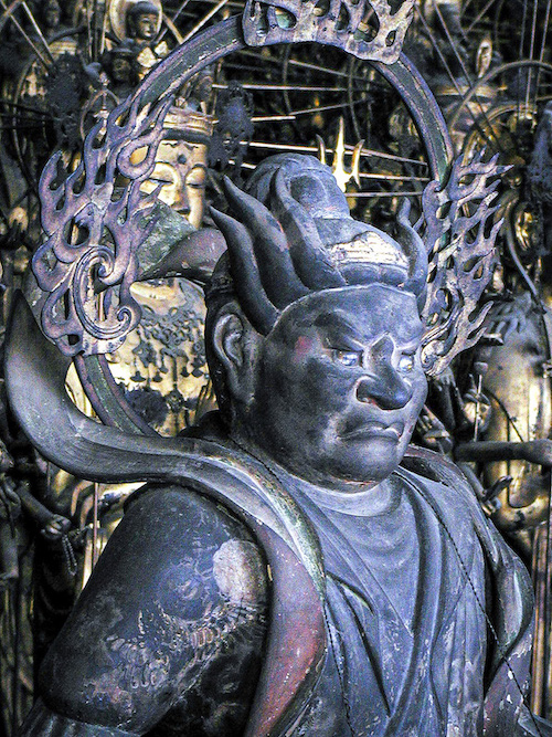 Sanjusangendo was the most mind-blowing temple we visited in Kyoto. Photography not permitted so I can’t take credit for the images below as I found them online as stock photos. I wanted to share them as this place was incredible. Sanjusangendo Temple was established in the twelfth century and houses 1,001 carved wooden statutes of Kannon, the Buddhist Goddess of Mercy, laid out in ranks in the main hall flanking a huge Buddha. On 15 January each year a competition of Japanese archery, ‘kyudo’ is held outside the hall. The temple’s name translates as “hall with thirty-three spaces between the columns.” Fierce warriors with painted eyes glare at us, hundreds of golden statues with intricate delicate headdresses line the steps.