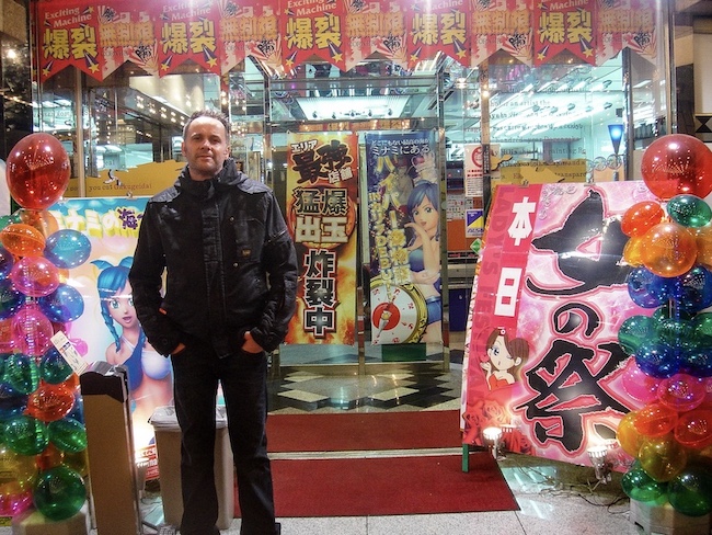 Pachinko is a craze in Tokyo and there are parlours scattered through the streets of Roppongi. Nothing prepares you for the deafening noise the glare of garish colour and the haze of cigarette smoke when you enter your first Pachinko parlour. Pachinko, パチンコ is a Japanese gaming device used for amusement and prizes. Pachinko machines were originally mechanical; modern pachinko machines are a cross between a pinball machine and a video slot machine. Players buy trays of metal balls like ballbearings at 4 yen per ball (250 balls for 1000 yen is the current rate) which are shot into the machine from a ball tray with the purpose of attempting to win more balls. The pachinko machine has a digital slot machine on a large screen in the center of its layout, and the objective is to get 3 numbers or symbols in a row for a jackpot.