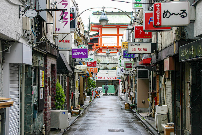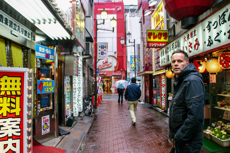 A small street in Kabukicho, a district known for adult entertainment filled with bars each one the size of a broom cupboard…closed when we were there during the day but they don’t openly invite tourists in. The streets cover a small area of about 4 alleys backing on to contemporary modern buildings and the area is under threat of development.