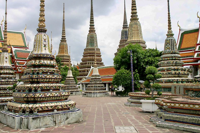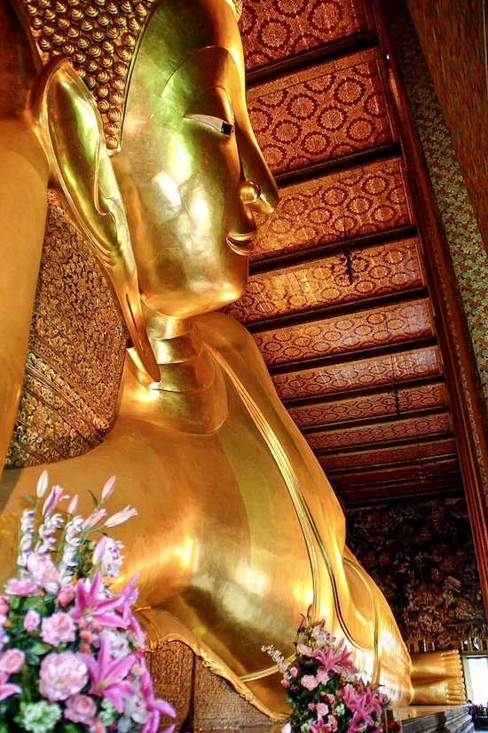 In the Phra Nakhon district of the city on Rattanakosin Island we see the 46 metre reclining Buddha at the 16th century Wat Pho Temple. The temple’s official name is Wat Phra Chetuphon Wimon Mangkhalaram Rajwaramahawihan…but it’s also known as Wat Po. It’s daunting trying to keep track of all the different names given to the temples. King Rama I rebuilt here on an earlier temple site and this became his main temple and is where some of his ashes are enshrined. It’s said to hold the largest collection of buddha images in Thailand.