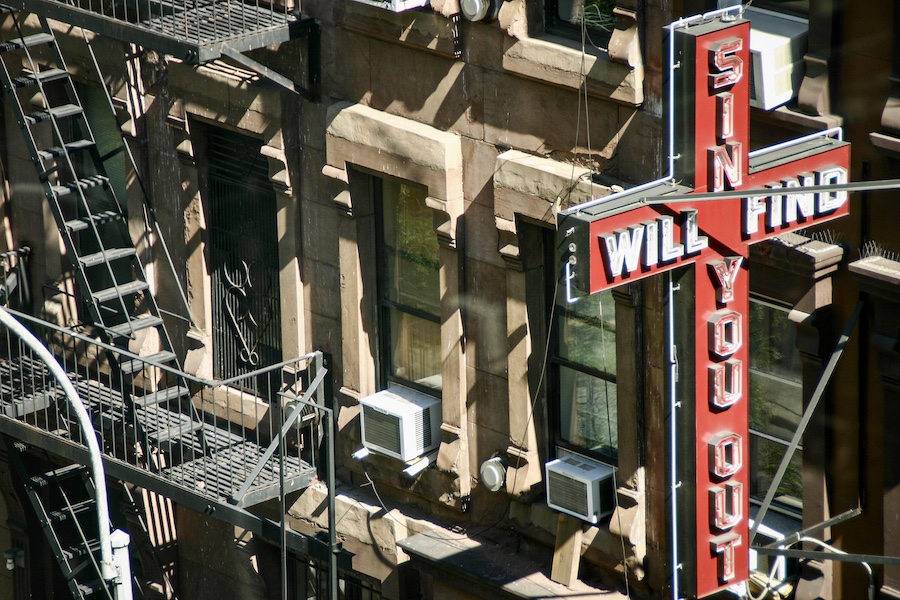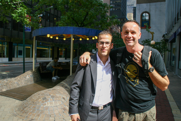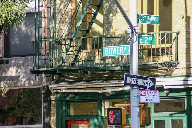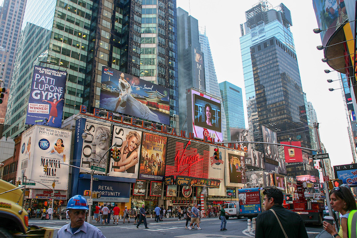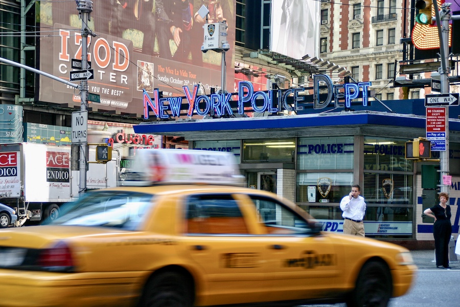 After meeting Quique we walked around Midtown and all the way back down to the East Village. By the huge Post Office building with its rows of columns looking like a Grecian Parthenon, through Times Square at 42nd and Broadway with its looming gharish digital billboards advertising music stars, broadway shows, the stock market, brand retailers and firmly in the middle of it a NYPD precinct. They approximate that over 40 million tourists a year pour through this area. Food tucks selling pretzels, hot dogs and soft drinks…people line up at a pizza truck. And amongst it all the distinctive yellow New York City taxis weave, jumping red lights, hands on horns at the jaywalkers darting through traffic. It’s frenetic, a mayhem of noise and colour shouted insults, shouted greetings, people begging for money, suits rushing to and from towering silver office blocks reaching in to the sky…carrying styrofoam containers of fast served lunch. Everything here is fast…the only speed this city tolerates.