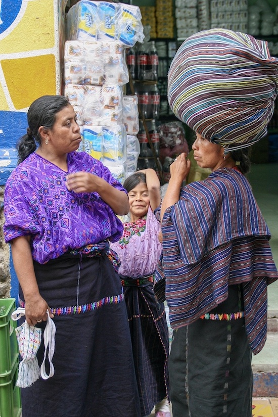 Chichicastenago. A 6.30am start for our daytrip a 3 hour drive through highland mountains. We took the slower road as the Inter-American highway was blocked by rockslides, rain loosened chunks of mountain. The scenery was stunning as we rattled along winding roads, rolling precariously close to the edge and climbing higher towards a view of Lago Atitlan. The driver stopped so we could marvel at the vast lake, an impressive sight surrounded by villages and volcanoes. Back on the bus we descended through forest losing 500 metres in elevation as we headed to the town of Panajachel. This is a dramatic region. The highlands stretch from Antigua to the Mexican border northwest of Huehuetenango. The traditional values and customs of Guatemala’s indigenous people are strongly adhered to here. The first language is a Mayan dialect with Spanish their second. There’s a lot of agriculture including the staple crop of maize from which Mayans believe humans were created in the third cycles of life…the first two being from wood and mud. We watched as men women and children walked the roadside carrying bundles of firewood for heating and cooking strapped to their heads with leather straps.