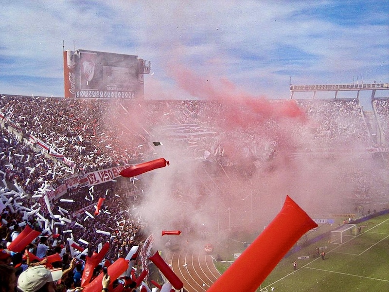 It’s Sunday 19th October, day of the Club Atlético Boca Juniors vs River Plate football match at River Stadium. The game itself was poor with only one goal scored. 1-0 to Boca. 60,000 River fans and only 2,000 Boca fans. Controlled ticket sales to prevent after-game carnage from fighting; Boca and River are huge rivals and matches are infamous for trouble. We were taken in a guided group for safety and sat in the River stands. We haven’t got a dog in the game but I wore a River hat and we were given large inflatable things to bluster with. We got in to it but couldn’t chant not knowing the language. A local school headmaster sat next to Dave translating the insults, he warned us jokingly that the celebratory atmosphere leading up to the match was often more impressive than the game itself. He pointed out the really hardcore River fans coming in to take their seats behind the goal…their entry delayed as police frisk them for weapons.