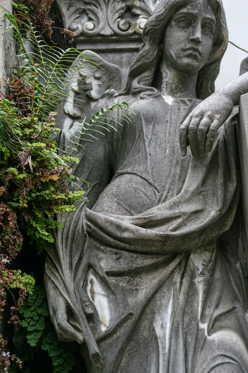 While many of the mausoleums are grand and well maintained others have fallen into disrepair due to years of neglect; broken glass skylights, rotting lace draped over coffins, crumbling plasterwork and collapsing entrances. It lends the cemetery a particularly gothic atmosphere. We peer through broken glass and crumbling brickwork to the coffins inside. Each mausoleum bears the family name etched into the facade; brass or bronze plaques are added to the front for particular family members. La Recoleta is a cemetery where the tradition of engraving a death date but no birth date has been maintained. There’s a colony of feral cats living here, gathering in their dozens near closing-time when locals feed them.