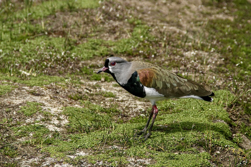A pretty bird with different shades of green and brown was very aggressive, found in pairs they make a hell of a racket when they see you….I think they’re called Teros. Protecting its nest, one repeatedly divebombed Dave. His city boy claims that the outdoors isn’t ‘his thing’ now justified after being terrorised by wildlife…but I think the rugged outdoors kind of suits him. We spot a Black Headed Ibis with his curved beak too far away for a good photo…the noise they make is quite incredible, they gathered in the trees near the hotel. Male (white) and female Upland Geese honk and watch us furtively.