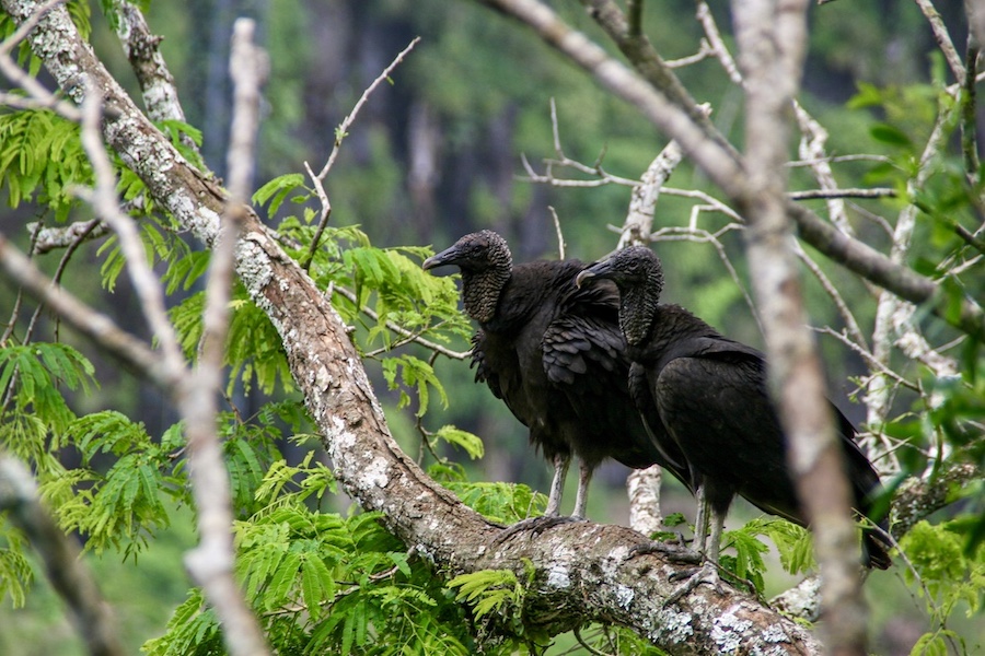 There’s wildlife to spot. We seen an Argentine black and white Tegu lizard, its life span is around fifteen to twenty years and they inhabit tropical rainforests in East and Central South America. They like dense foliage and forage for food consuming as much as possible before hibernation in autumn. They exhibit a high level of intelligence among reptiles along with a high level of physical activity during the wakeful period of the year. I sat down on a wall to photograph one…unusually for a lizard it came very close. Two stately American Black Vultures look like wigged English judges. A large bird though relatively small for a vulture with a wingspan of 5 ft, it has black plumage, a featherless, grayish-black head and neck, and a short hooked beak. Lacking a syrinx (the vocal organ of birds) its only vocalisations are grunts or low hisses.