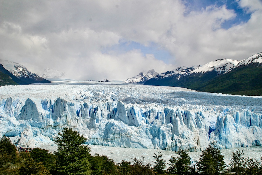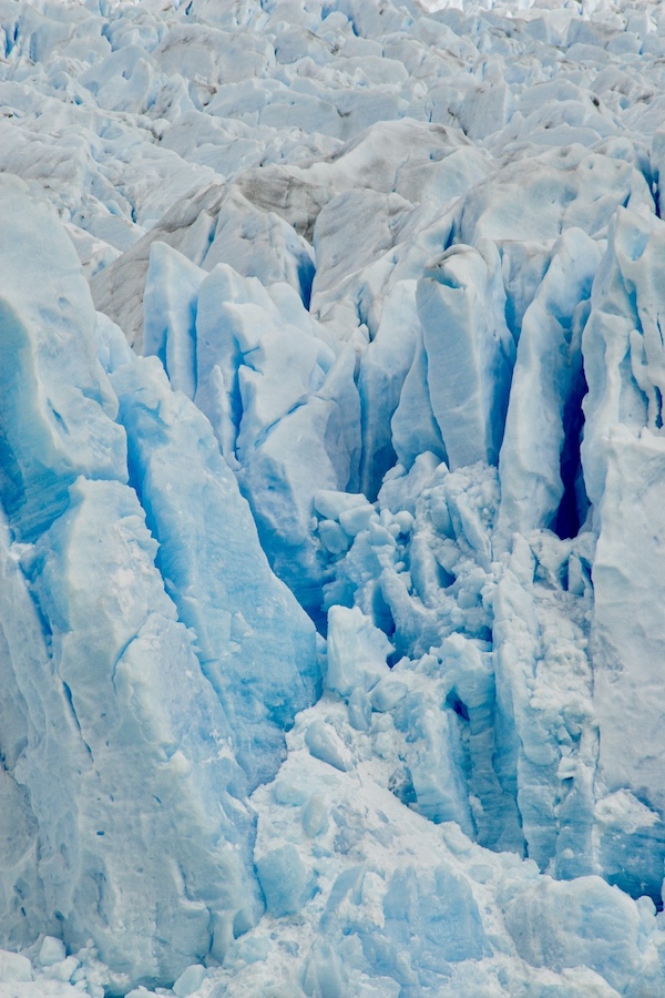 The glacier is vast, startling blue…19 miles long covering 97 square miles, refreshingly one of the only advancing glaciers worldwide at a rate of seven feet (2 metres) per day. At its deepest it measures approximately 700 metres (2,297 ft). Perito Moreno is known for its unique rupturing process. It advances over the L-shaped Lago Argentino forming a natural dam which when reaching the opposite shore separates the two halves of the lake. With nowhere to run off the water-level on the Brazo Rico side of the lake can rise by 30 meters above the level of the main lake. This enormous pressure breaks the ice barrier in a spectacular rupture event recurring between once a year to less than once a decade.