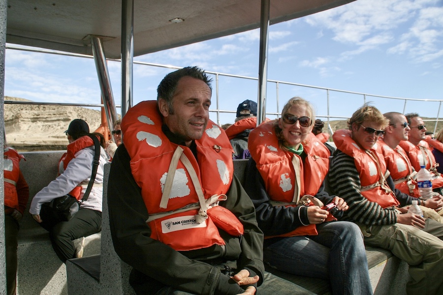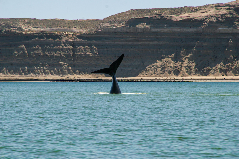 Next day a trip to Reserva Faunistica, Peninsular Valdes to go whale watching. And boy did we see whales. At 8am the bus collected us from our hostel in Puerto Madryn (population 66,000 founded by Welsh settlers in 1886). Scrambling for the shared bathroom at 7am we’re definitely feeling too old for hostel stays. After a quick breakfast of more sugared croissants more ham and more cheese (it’s getting monotonous now), we travelled 90 minutes to Puerto Piramide where we catch the boat out in to the Golfo Nuevo to see the Southern Right Whales. Paul and Natalie from the Penguin colony trip were on the same tour with us. The bus was 150 pesos each an additional 100 pesos for the boat and 45 pesos entrance fee to the peninsular reserve. Península Valdés hosts the largest breeding population of Southern Right Wales with approx. 2,000 whales catalogued. Golfo Nuevo and Golfo San José are both protected bodies of water located between the peninsula and the Patagonian mainland and the wales come here between May and December for mating and giving birth due to gulf waters being quieter and warmer than the open sea. We didn’t see any, but Orcas are in the open sea off the peninsula often beaching themselves on shore to capture sea lions and elephant seals. You know when you watch those TV nature documentaries with the Orca scoffing down the sea lion? That will have been filmed here. Discovery Channel frequently film here and National Geographic photographers and researchers were all over the peninsular when we visited. They claim that this is now the only place in the world where Orcas feed this way and their behavior is learned on this Patagonian peninsular.