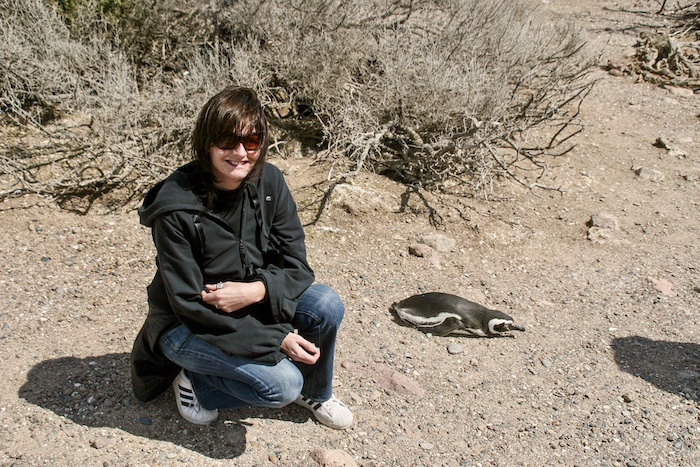 Patagonia; Puerto Madryn, Punta Tombo Penguin Colony. We’re in Patagonia, been here a few days in this wind blown barren expanse of low growing shrubs amid stretching miles of arid nothingness under a huge sky. We took an 18 hour bus trip from Buenos Aires here to Puerto Madryn to see the penguin colony and to go whale watching. Luckily it was a (squirrel promoted) cama ejectivo bus; a large squashy seat which reclines a long way back with a pull out padded board for your legs…not a bed but way more comfortable than your average airplane seat in economy and a lot cheaper than a flight. Add the on-board movies, food, toilet and waitress service…and 19 hours flies by. We left Buenos Aires at 3pm, watched 3 movies, ate dinner and fell asleep around midnight. All this for around £24 each. A brief security stop just after midnight woke me when a guard boarded the bus to shine his flashlight on us all…and looking out of the window I noticed they’d taken all the bags off the bus so the sniffer dogs could have a wander through them. We were cleared and continued on with everyone dozing off again, waking around 7am for breakfast and pulling in to Puerto Madryn around 9.