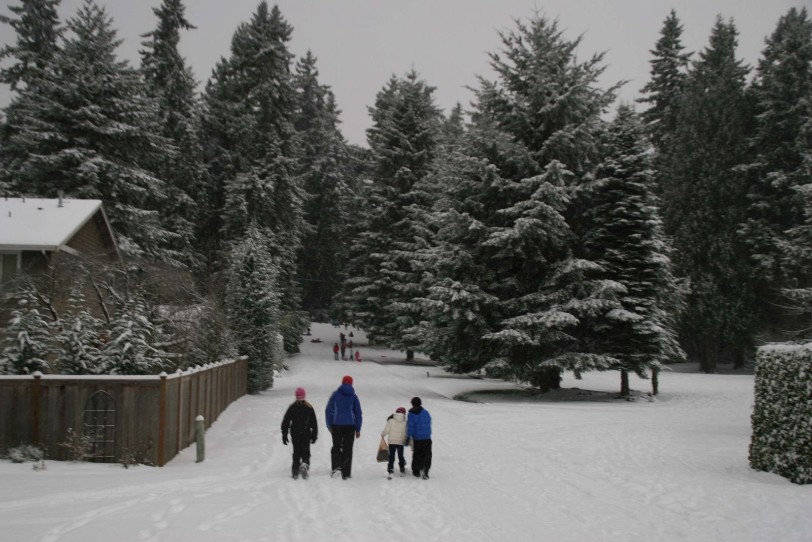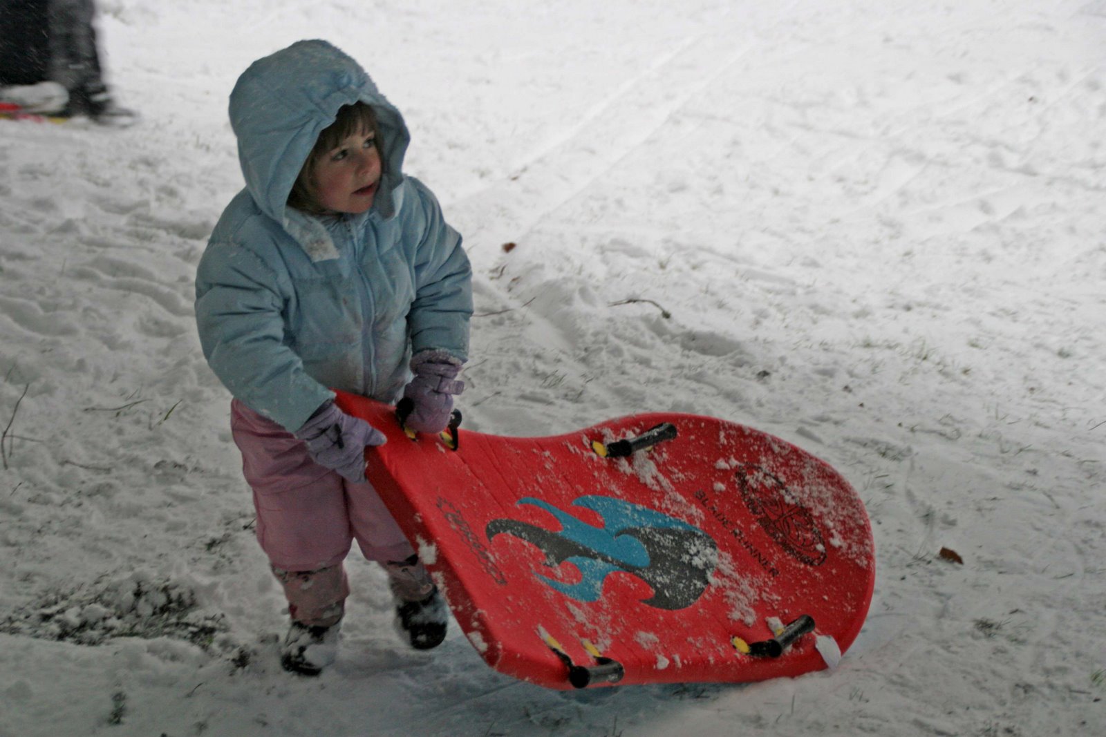 All the schools closed, no-one could get to work….so what else to do but to go sledging with the kids!