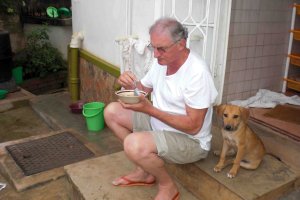 My Dad, Hatch, sent over some new photos from his place in Kampala..here he is eating Easter Sunday ice cream accompanied by his new pup Brooks.