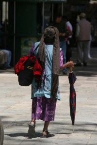 Women from the Chiapas region come to Oaxaca city to sell; they are recognised by their traditional dress, slighter build – slim and quite short, usually long hair plaited with colourful ribbons and more Indian looking facial features.