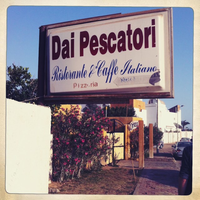 Our local Italian fish restaurant Dai Pescatori was fantastic and without a doubt the best place to eat in Dahab…real Italian cooking by owner Nadir who lived in Italy for 25 years and still returns to a house he has there several times a year. It took us rather longer to find the local Egyptian chicken and tomato dishes cooked at Zorby’s…we walked up the main road from Dahab town 3 times at dusk before we found it under a tree. The sign was in Arabic as expected but had no mention of ‘Zorby’s; apparently that’s the father’s name and is just how the place is known by the locals. It was very basic fare but very cheap and tasty enough. The tomato sauce swilled over the vegetables isn’t the greatest thing I’ve ever tasted but the Egyptians seem to add it to pretty much everything on the local food.