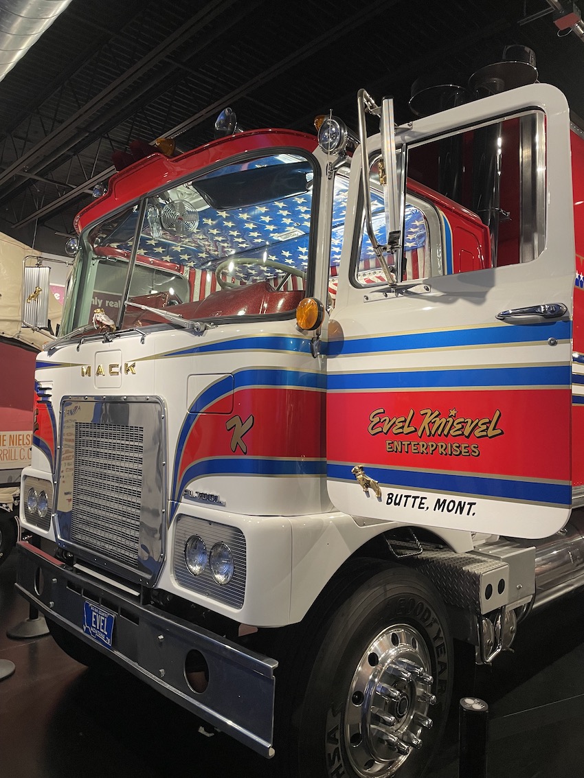 2 hours later we drive to the Evel Knieval museum…childhood memories of watching him perform death defying motorbike stunts. His truck was found rusting in Florida; fully restored down to all the hand-painted graphics, it’s an impressive sight. Posters (one from the Empire Stadium Wembley in London), his leather suits, stunt bikes and diagrams of how many bones broken for many of his jumps, it’s a fun wander in to memory and the friendly staff and Harley-Davidson Museum in the same building are an added bonus.