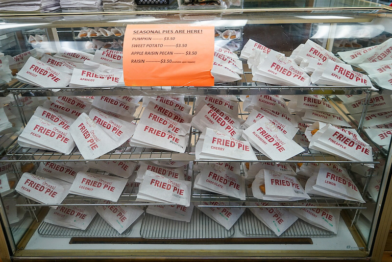 In the spirit of ‘Dave standing under giant things’ in Wynnewood, Oklahoma we visit another Muffler Man at Steppin’ Out Western Outfitters…miles of cowboy boots, cowboy hats, hard weather coats, leather belts, friendly staff asking where we’re from. On to Davis Oklahoma stopping for a cholesterol hardening ‘Arbuckle Mountain Fried Pie’; one apple one cherry.