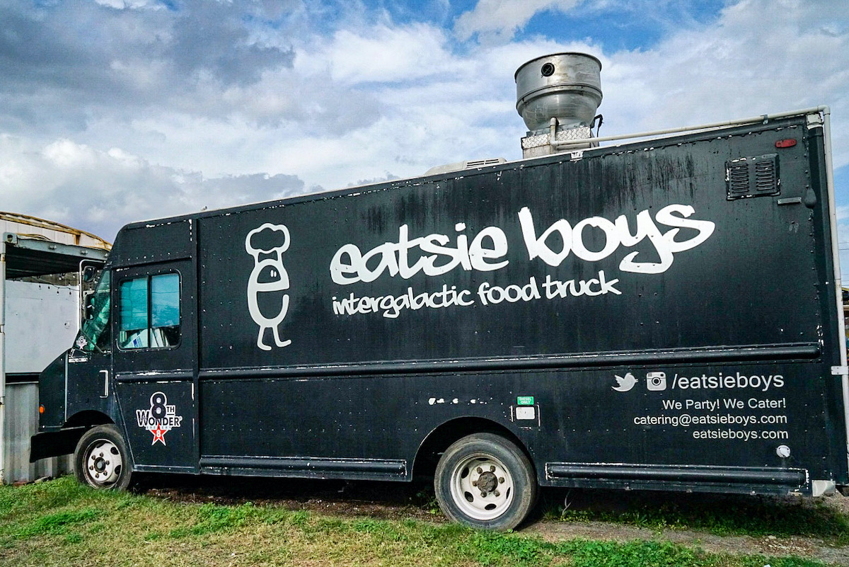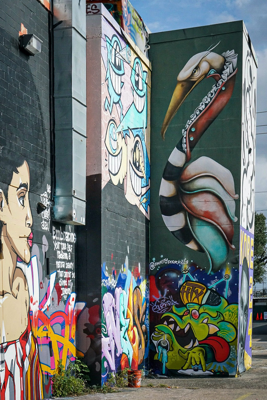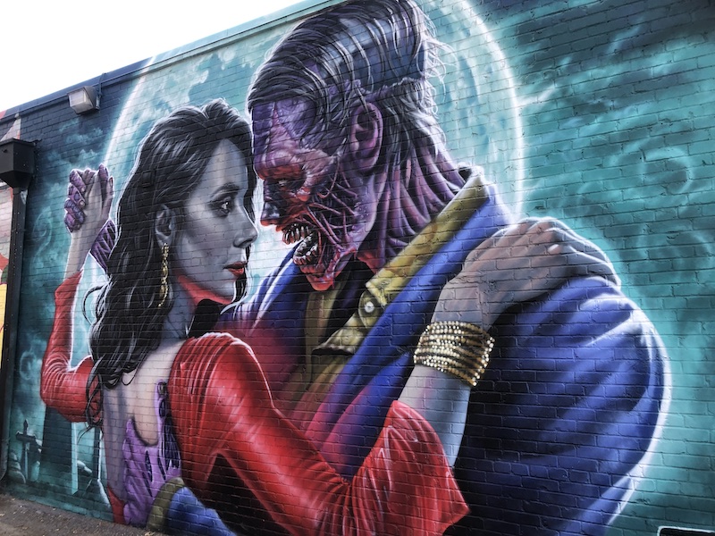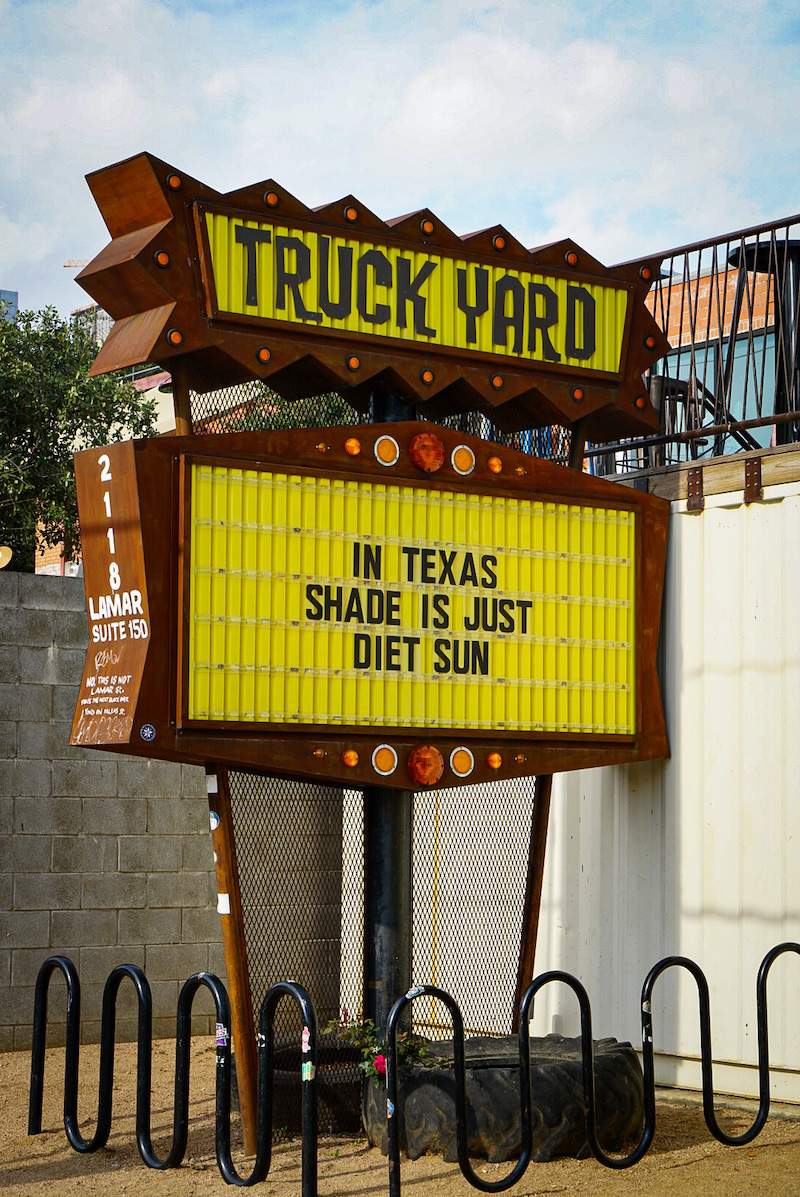We drove to see the 36 feet high stone Beatles statues by sculptor David Adickes in the beer garden plot of 8th Wonder Brewery in east downtown Houston. A foodtruck called Eatsie Boys made us laugh. And to the Graffiti Park on Chartres Street in Houston’s East End where young men sold t-shirts and baseball caps out of the back of their cars and big SUVs rolled in playing loud music, swaggering to check out the murals but friendly when you talked with them. We ate pizza fresh from the oven at a slice place on a corner, oil slicking our fingers and the cardboard plates.