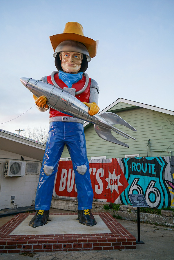 Leaving the Golden Driller and back on Route 66…more roadside sign beseechers ‘Pray Without Ceasing’, the world’s largest gas pump, a restored train, retro motel signs, a round red barn….gun shops, pawn shops, low level strip malls, acres of plastic signage for fast food…typical highway America, but Route 66 has more interesting oddities en route and some surviving mom and pop stores selling antiques and bric-a-brac. Does Route 66 feel iconic? I’m not sure… but we loved it.