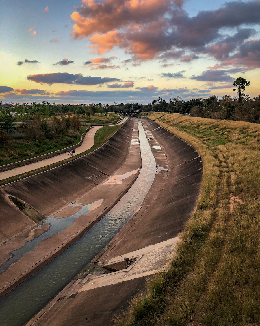 In Downtown Houston we wandered the historic district, streets flanked by modern skyscrapers were deserted and eerily quiet. Property plaque markers on pavements made for a good game of filming myself putting my foot over them childishly chanting “na na ner nah nah” We took a supermarket bought picnic of kale and orange salad with cranberries and walnuts, a sandwich and chocolate cakes to sit in the park to wait for the Mexican free-tailed bats to fly out in their thousands from under the bridge at Waugh Drive. They estimate 250,000 bats (sadly more than 30,000 found dead after the February freeze in 2021). A crowd had gathered, sat on the grassy banks waiting for the bats to emerge at dusk, we all peered under the bridge, getting restless after 30/40 minutes….then suddenly they swooped out in a huge black chattering mass, flitting, diving, heading together to feed, a wonderful sight….a few picked off by two cunning Herons waiting in the trees. And in just a few minutes they were gone and the sky turned black as the sun disappeared. Magical.