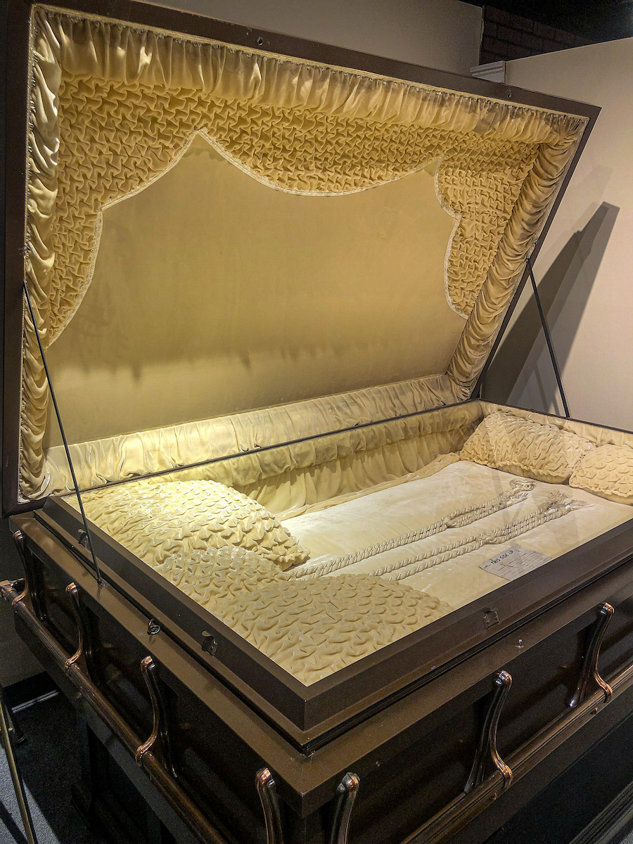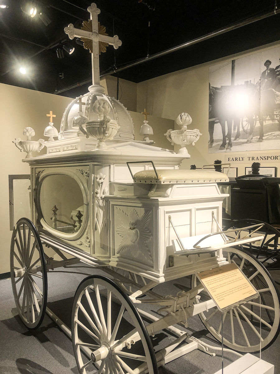 An odd undertaking (pun intended) to visit the The National Museum of Funeral History; so much more than we expected and fascinating. Exhibits of Presidential funerals, A 1972 Japanese ceremonial hearse, brightly painted Kane Quaye Teshi Ghanaian crab and animal caskets, an embalming fluid exhibition. Victorian velvet lined coffins, carriages and an oversize casket made for a family of 3; the baby died so mother and father decided to commit suicide to be buried with their child…ordered and paid for the custom built casket, changed their minds, left the State…and 20 years later tried to get a refund.