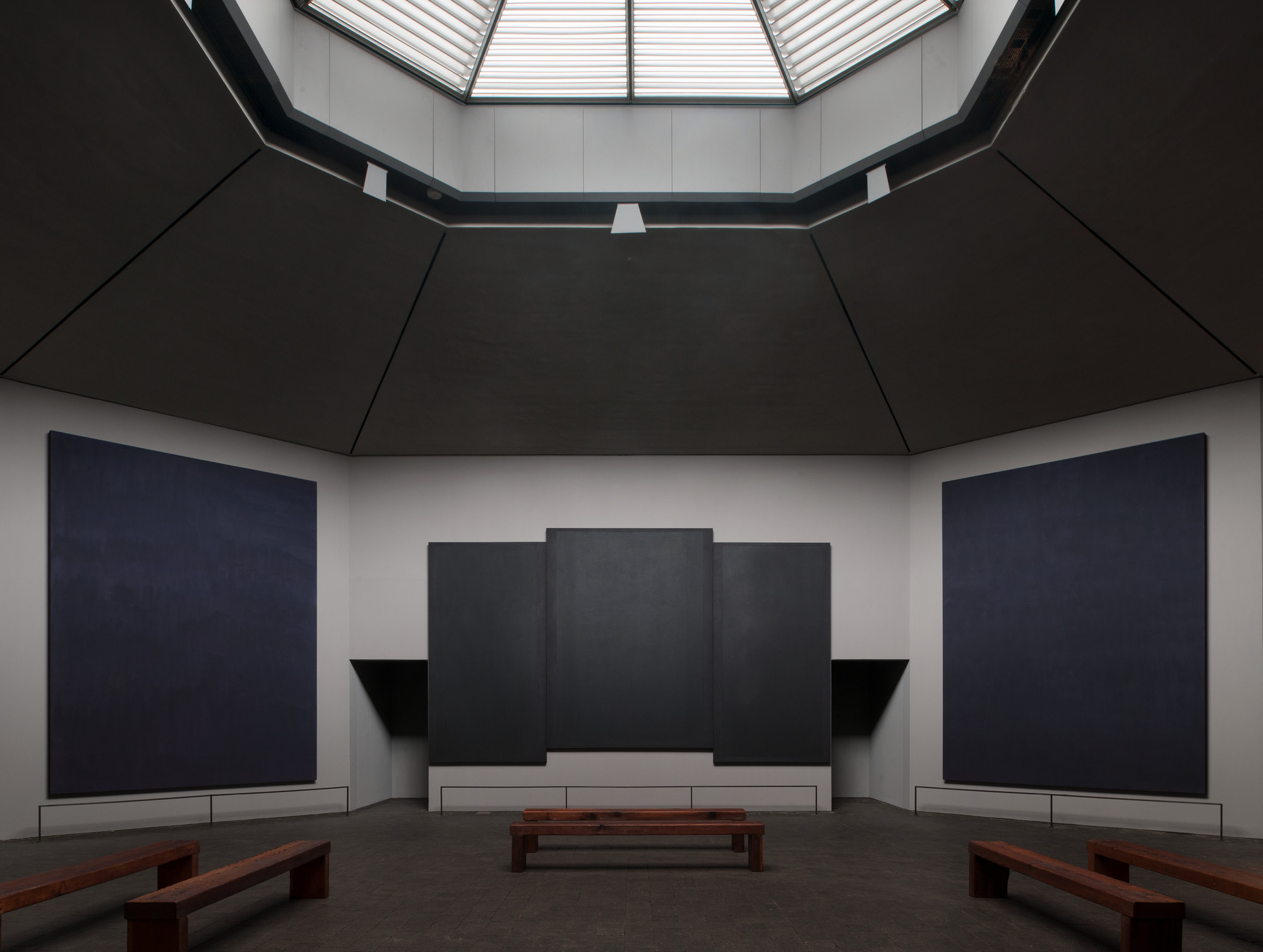 A four hour drive to Houston and straight to The Rothko Chapel which was serenely beautiful. 14 moody blue/black Rothko paintings hang inside. No photos allowed (this credited to Paul Hester). A serene contemplative space for me….Dave found it depressing, which I also understood.