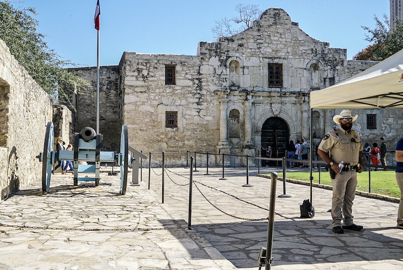 Roadsign “Hit by a truck? Call Jeff 444 – 4444” depends how hard you were hit to make that call. Drove to The Alamo, crowded, lining up to file in. Interesting to see the historic mission and fortress founded in the 18th century; to stand where American folk heroes Jim Bowie and Davy Crockett (as well as many Mexicans) fought and died at the Battle of the Alamo in 1836, overrun by the Mexican army attempting to recapture the city. The sun dazzled on the Garrison leaders carved in to the Alamo Cenotaph featuring names of 187 defenders…some proved later not to have been there. History is a fallible ally. Walked the river walk packed with fellow day trippers; restaurant touts jostling for attention, river boat tours, keyrings, t-shirts…everything, but nothing you need…so we got out of town and back in to the country, dropping by Buc-ee’s on the way in New Braufels…a Texan favourite a bit lost on us; like a big branch of Target but with a beaver logo on everything and the largest petrol forecourt we’d ever seen. Friendly food counter staff dressed like farm hands in faded dungarees and corn yellow cowboy hats. Grackles hopped about, the males a deep oil slick blue/black the females a rich brown turning russet in the lowering light. Back in the garden with our faces tilted to the sun. Cooked black bean, feta, mango, chili and red pepper tacos…tastier than anything we’d eaten out so far.