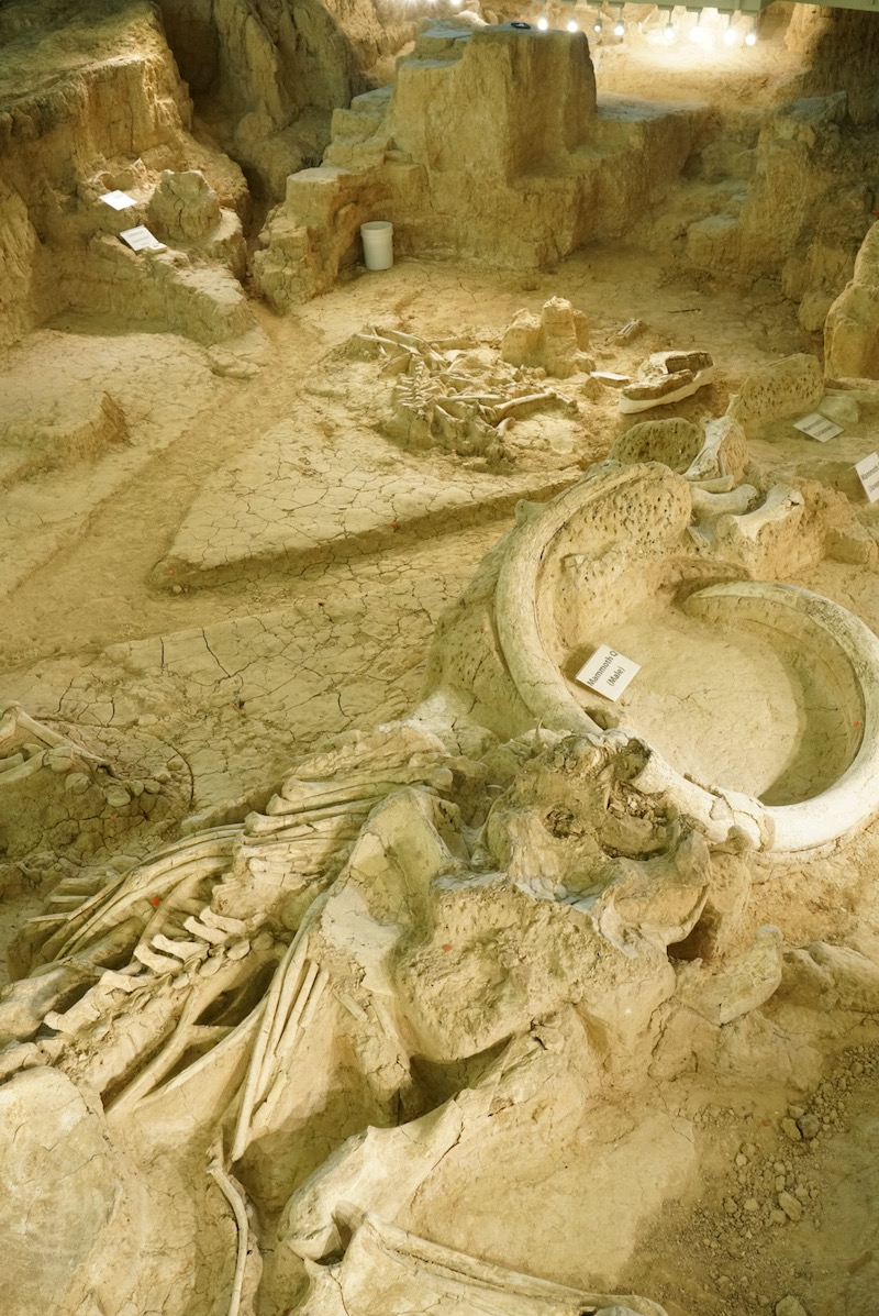 So tired we slept 9 hours…it’s been a lot of time on the road. Drove to Deep Ellum, a Dallas neighbourhood for breakfast. Some street murals but Dallas is so sprawled and anti-walking we just wanted out. My favourite thing in the city, a giant eyeball installation in a private park. We left via Bishop Arts district on the outskirts; leaving Dallas in the same tangled mass of traffic as arriving. Took the I-35 to Waco to stop at the National Mammoth monument which sits in wooded parkland near the Bosque River. A nursery herd of Pleistocene Columbian mammoths were discovered by Paul Barron and Eddie Bufkin in 1978 when they were searching for fossils and arrow heads in a ravine. For 30 years Baylor University staff, students and volunteers excavated the site and opened it to the public in 2009. 6 Columbian mammoths and a few other Ice Age animals are on view in an indoor area for a small ticket entry price…Mammoth bones from 65,000 years ago, an extraordinary discovery, a privilege to see.
