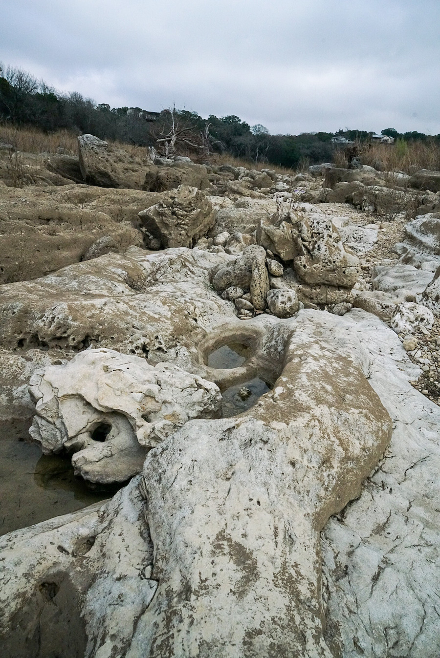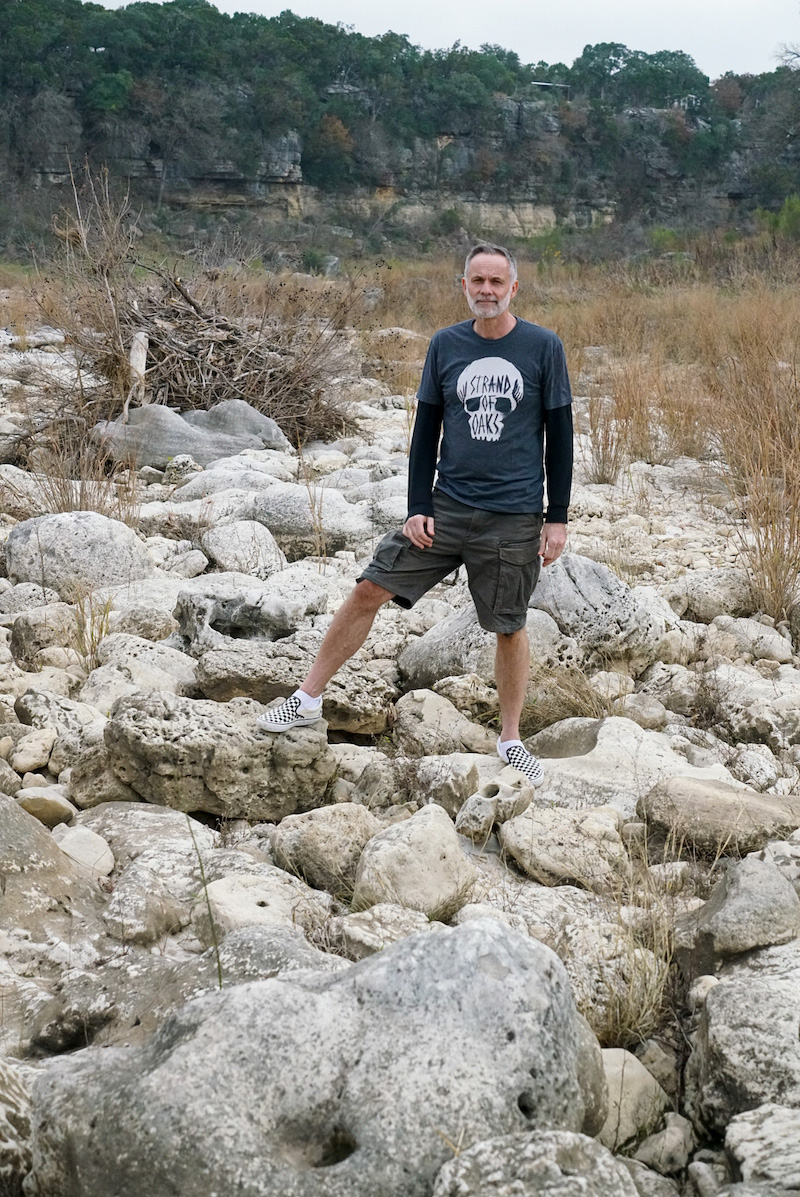 A lazy lie in, the black cat’s disappeared. A scramble in the dried out bed of the River Blanco. Sun bleached rocks and stones worn smooth…twisted uprooted trees thrown back in the wash. We counted 13 raptors circling above…from the white marks on the wing they looked like Turkey vultures. Gunshots nearby…Texas target practice. Back at the house, Dave cooked a chili. We ate it with corn tortilla chips, sour cream and grated cheese sitting on the deck overlooking the dry creek. 22 degrees Celsius on Christmas Eve. A susurration of wind gently nudging the wind chimes. Watched a movie about an asteroid on a collision course with earth…too sated and content to care.