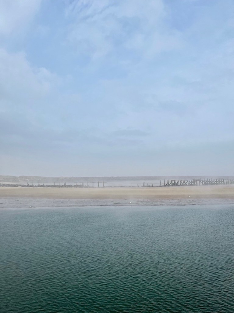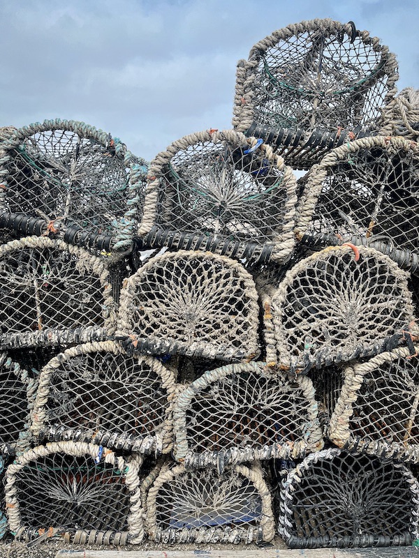 A drive with my sister and niece further north to Northumberland. Stopping at Amble in Morpeth to look out across the harbour among the crab and lobster pots. Eating locally bought sausage and black pudding rolls…hot from the oven rolled in buttery crumbling pastry.