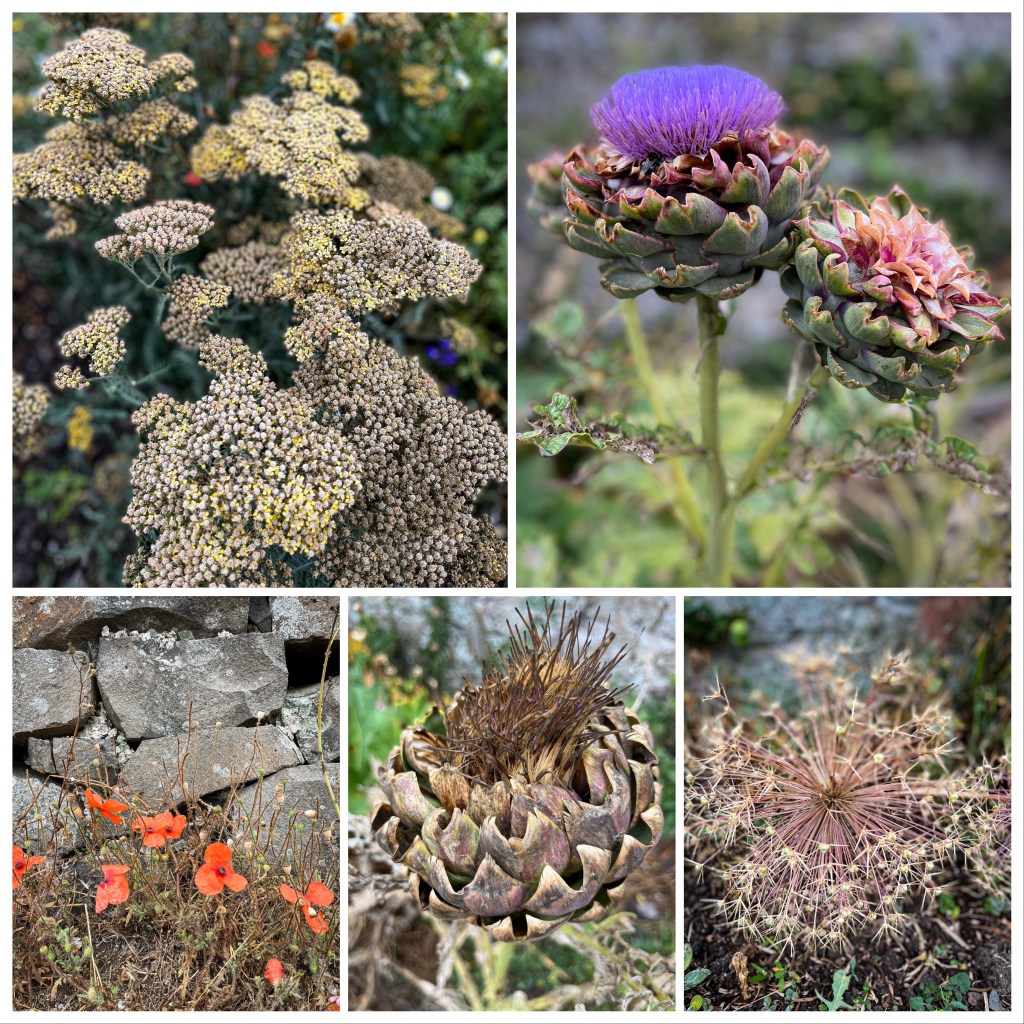 The Gertrude Jekyll (1843-1932) garden on Holy Island. Enclosed by stone walls that buffer against the wind. Jekyll was a famous horticulturalist who created over 400 gardens in the UK Europe and US.