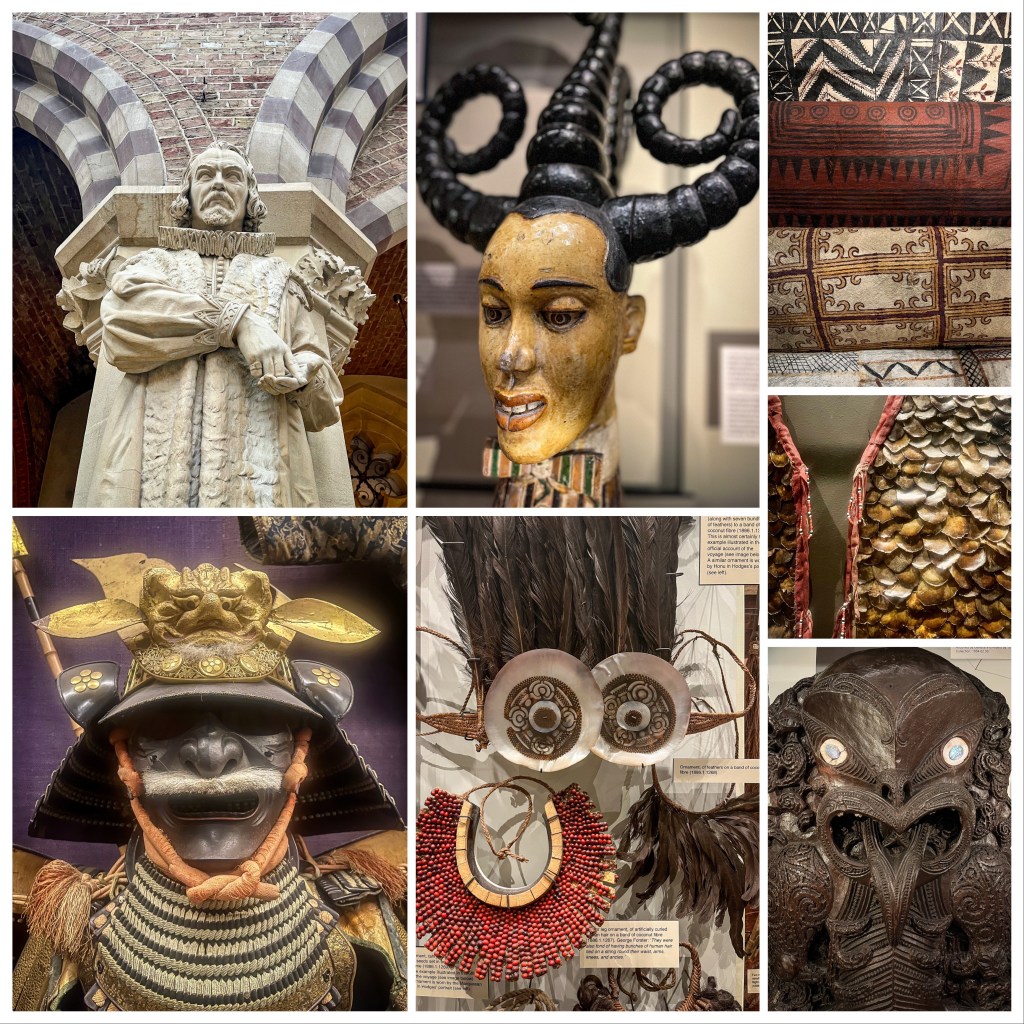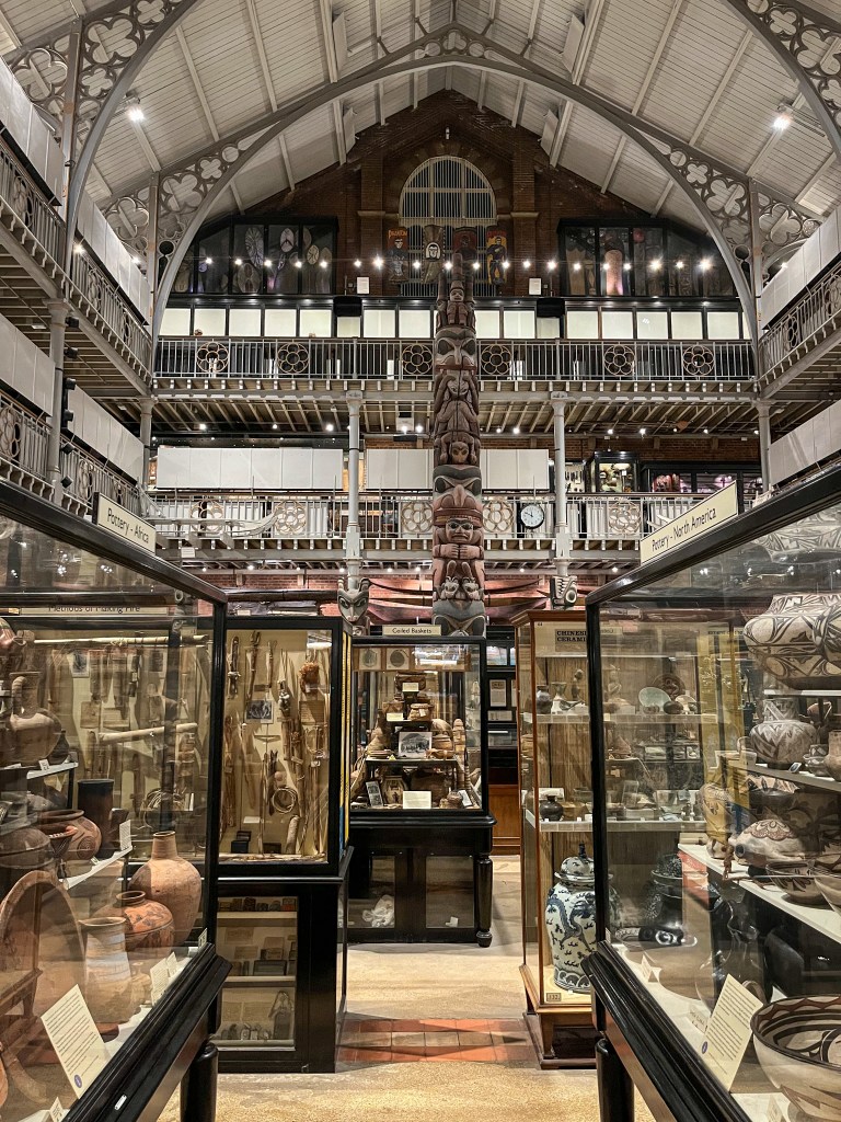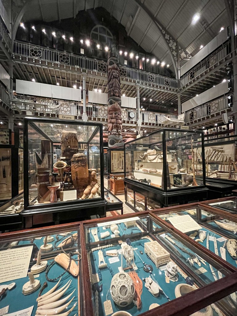 Architecturally the building is a wonder but walk to the rear of the Natural History museum and you enter the collection of Pitt Rivers where everything is arranged by type; instruments, masks, textiles…it’s a mind-blowing array of artifacts, many displayed with their original handwritten labels and displayed in wood and glass cabinets. And you can visit all of this for free. It is quite breathtaking…the perfect end to my visit to England.