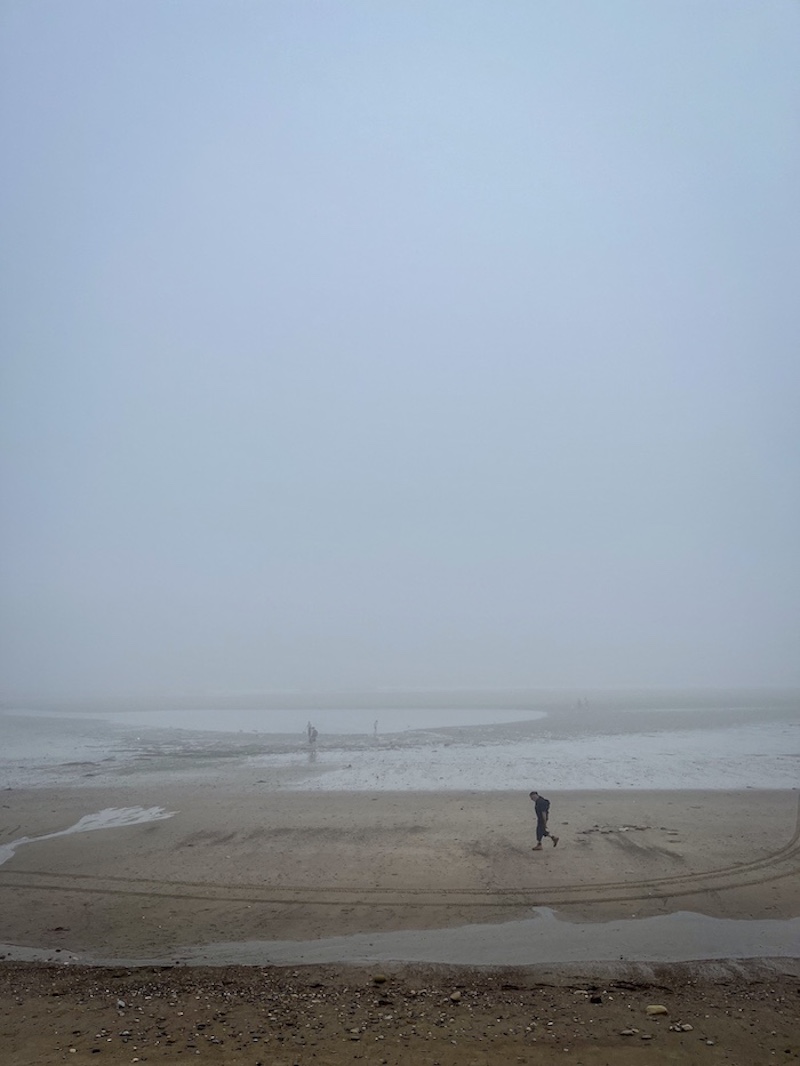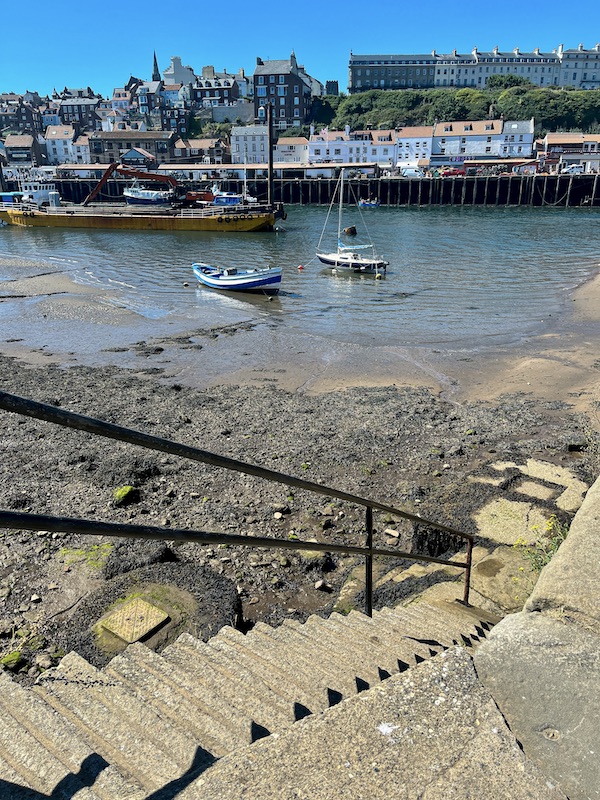 Back in to the town of Whitby, from glorious sunshine and cloudless sky in the villages to heavy fog and grey seascapes walking the harbour wall with Averil.