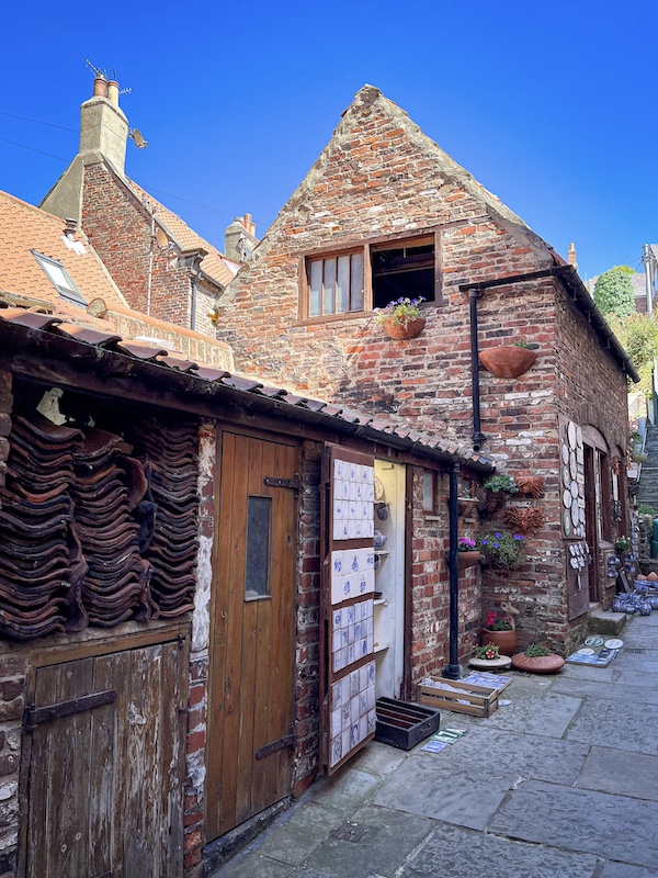 Walking the cobbled streets of harbour town Whitby on the North East Coast, North Yorkshire.