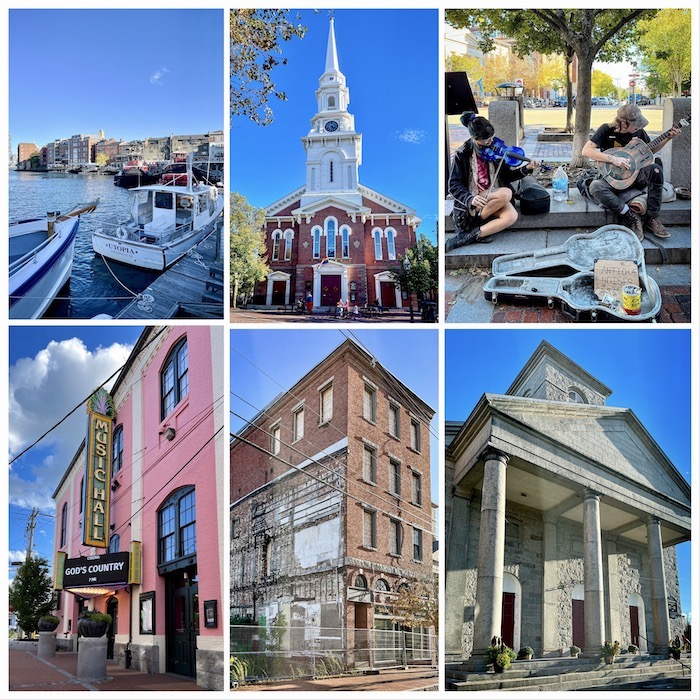Over the state border in to New Hampshire to Portsmouth. Good looking 19th century brick buildings and redbrick pavements. Shops in original storefronts. We walked around town, chatting with street musicians from Georgia, seeing the old music hall, the town centre church and walking to the harbourside. Ate pizza from a wood-fired oven, friendly staff. 20 minute drive out of town we stayed one night in Hampton at a roadside place called Lamie’s Inn, an old fashioned room where you could hear all your neighbours’ going for a pee…but clean comfy, friendly staff…luckily we had earplugs.