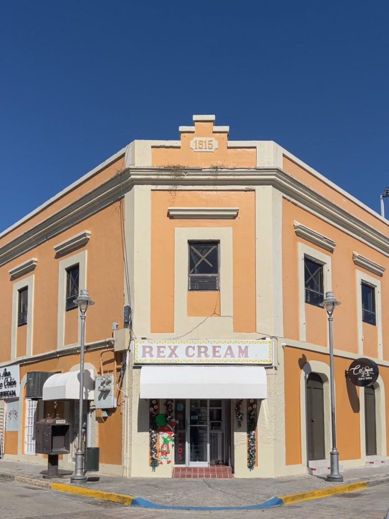 We’re hungry, hope to find a good place to eat pork but for now we fall back on bbq Pringles. Towards Arroyo it’s much more developed; American chains KFC, Walgreens and local restaurants line the PR3 highway. We turn off on to Avenida del Rio; passing behind a row of squat concrete bungalows bunched up close. Cursing at potholes. We turn back on ourselves returning to the PR3 South to the town of Guayama to its Plaza de Recreo Cristobal Colon. There we meet Francisco and his family; he was from the area before moving to the US where his 3 kids were born. He was “mind blown” that as tourists we were visiting far from the usual tourist places. He left Puerto Rico, joined the US Airforce, was stationed worldwide including Afghanistan, met his wife; he’d travelled so far yet was still surprised we’d visited his old city. We talked, moving to the shade of the palms in the pretty square and follow his advice to get ice cream from Rex Cream on Calle Callimano Martinez; a place he visited as a boy.