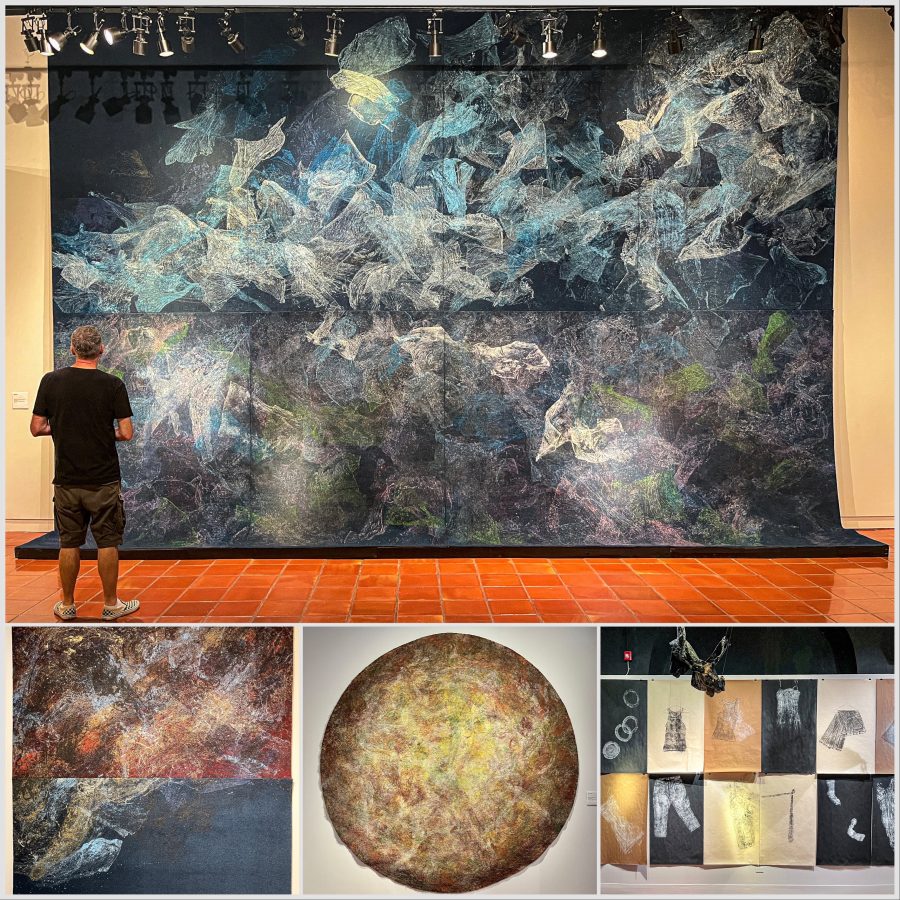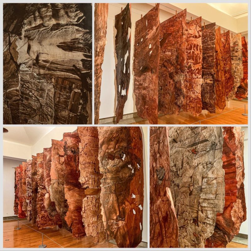 A wonderful installation of clay impressions on paper by Jamie Suarez. 2004. Each one around 6 feet high.