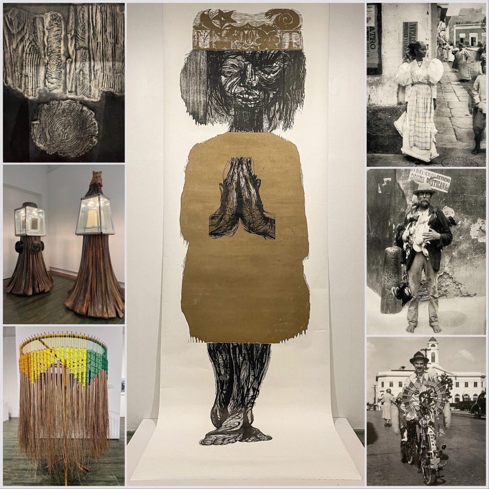 Into Santurce to look for the street art murals, visiting first the Museum of Contemporary Art. An artisan market is trading in the grounds of the impressive building, a former school…it spreads inside to the tiered red brick walkways from which different doors lead in to different gallery exhibitions. A large woodcut by Martin Garcia Rivera (Puerto Rico), ‘Lost Forest’ wood print inside a wooden box installation by Rimer Cardillo (Uruguay), Bamboo brushes by Natalia Ortega Gamez (Dominican Republic). Two installation pieces by Daniel Lind Ramos (Puerto Rico) the bases looked like metal but made from coconut palm petioles; the layers of the trunk. In another gallery an archive photographic exhibition ‘The Museum of the Old Colony’ images used as propaganda to promote America as exemplary colonists after the US took Puerto Rico from Spain. ‘A real Yankee Doodle Dandy’ (1948) looking like an early Mod on his bike. A tiny Caribbean island, the Commonwealth (or Free Associated State), Puerto Rico is currently an unincorporated U.S. territory unofficially observed as a 51st State of America.