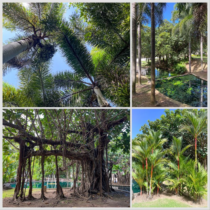 We wandered through the small but pretty sculpture garden behind the museum. Palms with scarlet bark and magnificent gnarled trees.