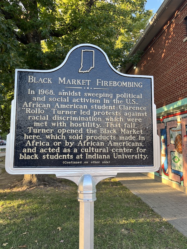 Indiana Bloomington Black Market Firebombing https://www.in.gov/history/state-historical-markers/find-a-marker/find-historical-markers-by-county/indiana-historical-markers-by-county/black-market-firebombing