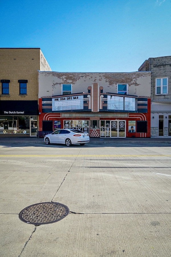 A friend comments on my facebook post and reminds me of the Morrissey video for ‘Suedehead’ filmed in Fairmount and at Dean’s grave…a hilarious shot of Morrissey atop a tractor trying to get in to gear before driving in snow…another of Morrissey playing bongos next to a herd of black cows. Imagine the record label meeting: “MTV will eat this up…it’s great!” Opposite the graveyard a wall of corn looms dark and ominous; a fixture in horror films. In Elwood we see a place called ‘Eats of Eden’.