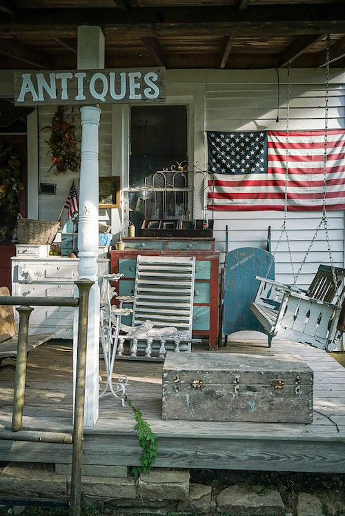 We meet Bobby and Lisa outside an antiques place where I’m taking photos of the flags on the porch, visiting but they know the area well…they collect antique furniture. Friendly and interesting, they were measuring up the Possum Belly Bakers Rack they’d bought to make sure it would fit in their truck. I’d never heard of one before and look it up; curved lower drawers to keep the rats out of the food.